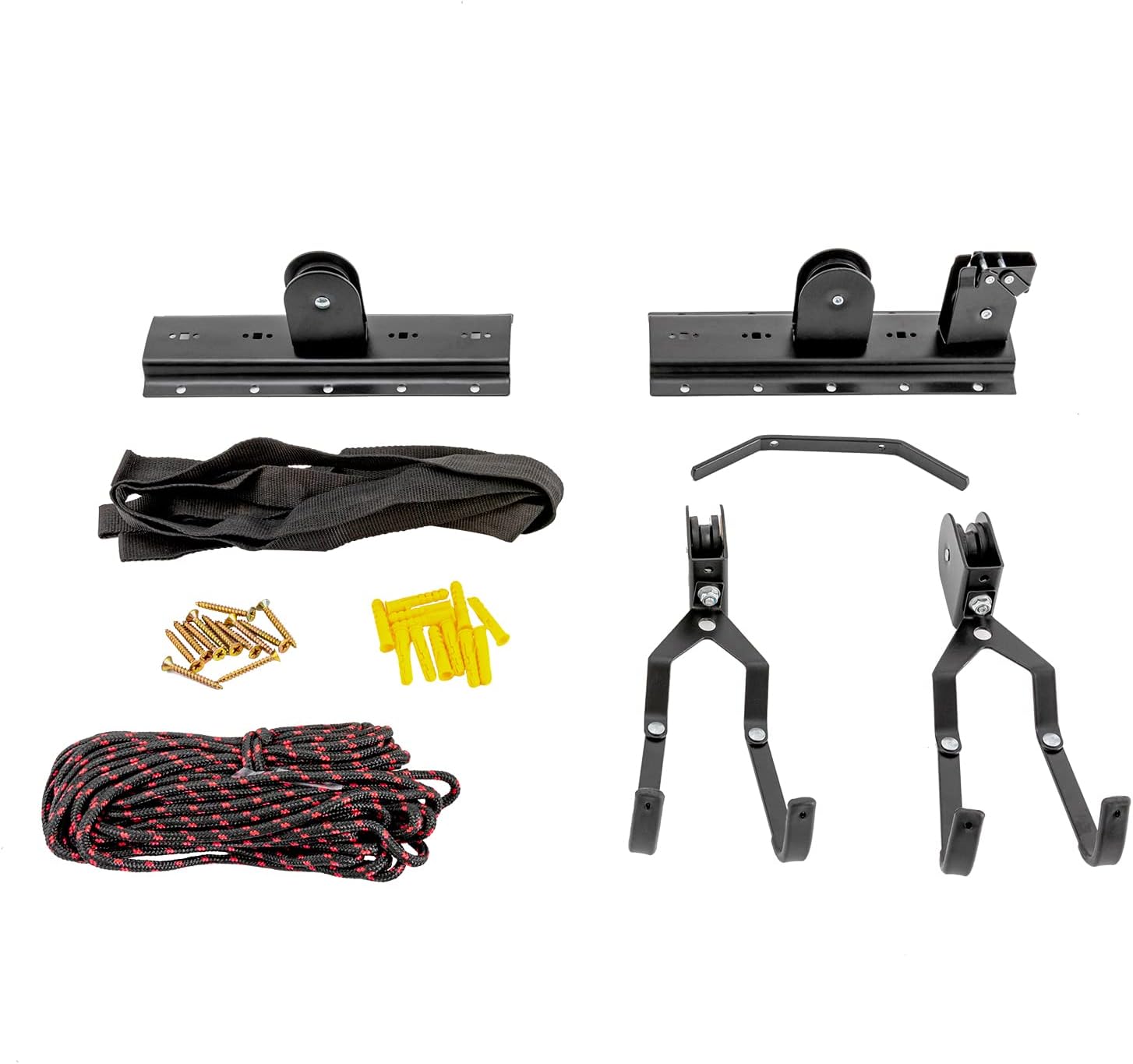 - 【EASY TO CARRY AND STORE】:Its detachable and foldable design makes it easy to carry and store. The bike hangers pulley system can be easily stored in a small corner and can be carried around for outdoor work.