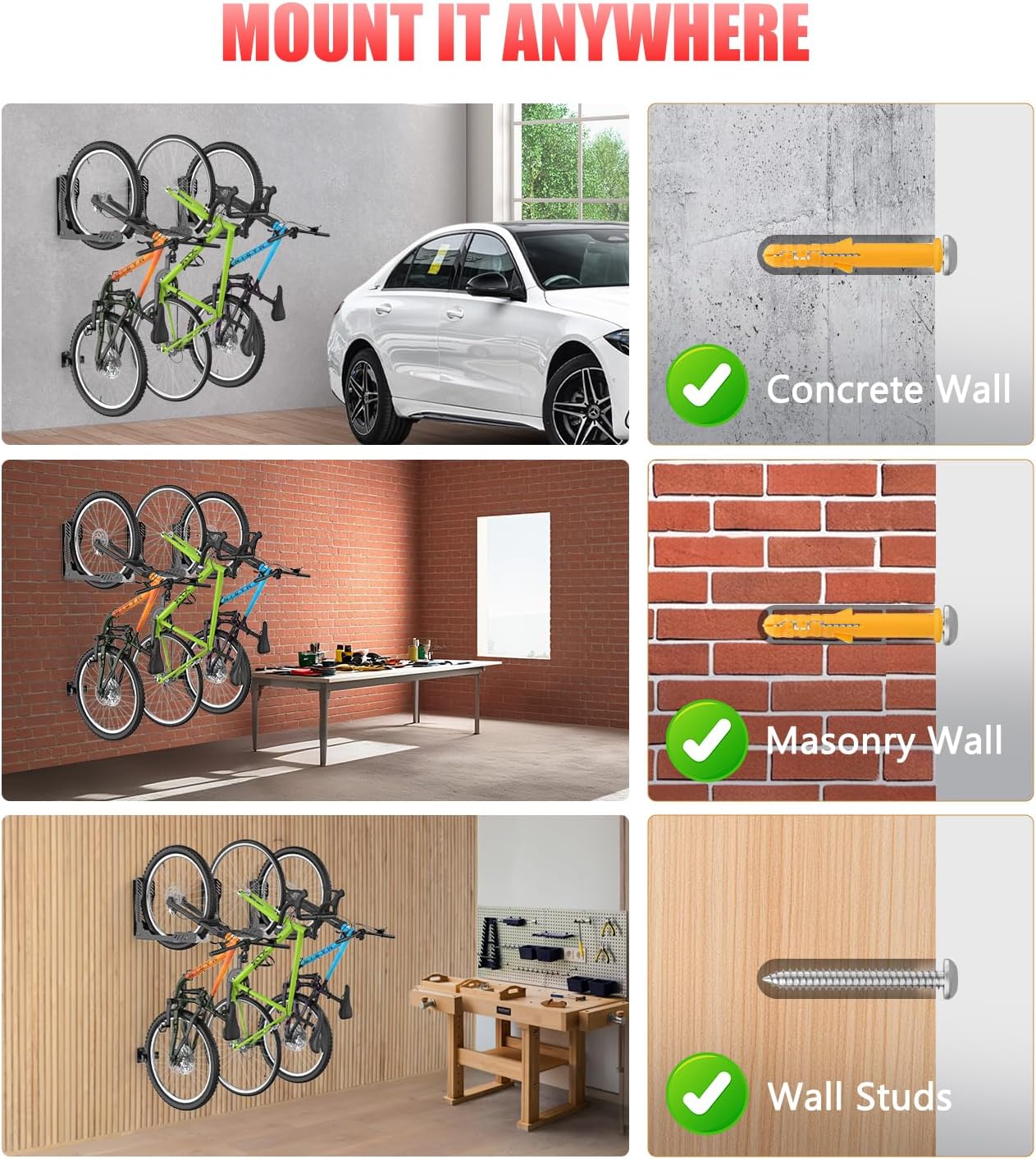 ALIXUEQIN Swivel Bike Wall Mount 2 Pack Bike Rack for Garage, No Heavy Lifting Required Wall Bike Hangers Can Holds up to 77 lbs (Black & White)