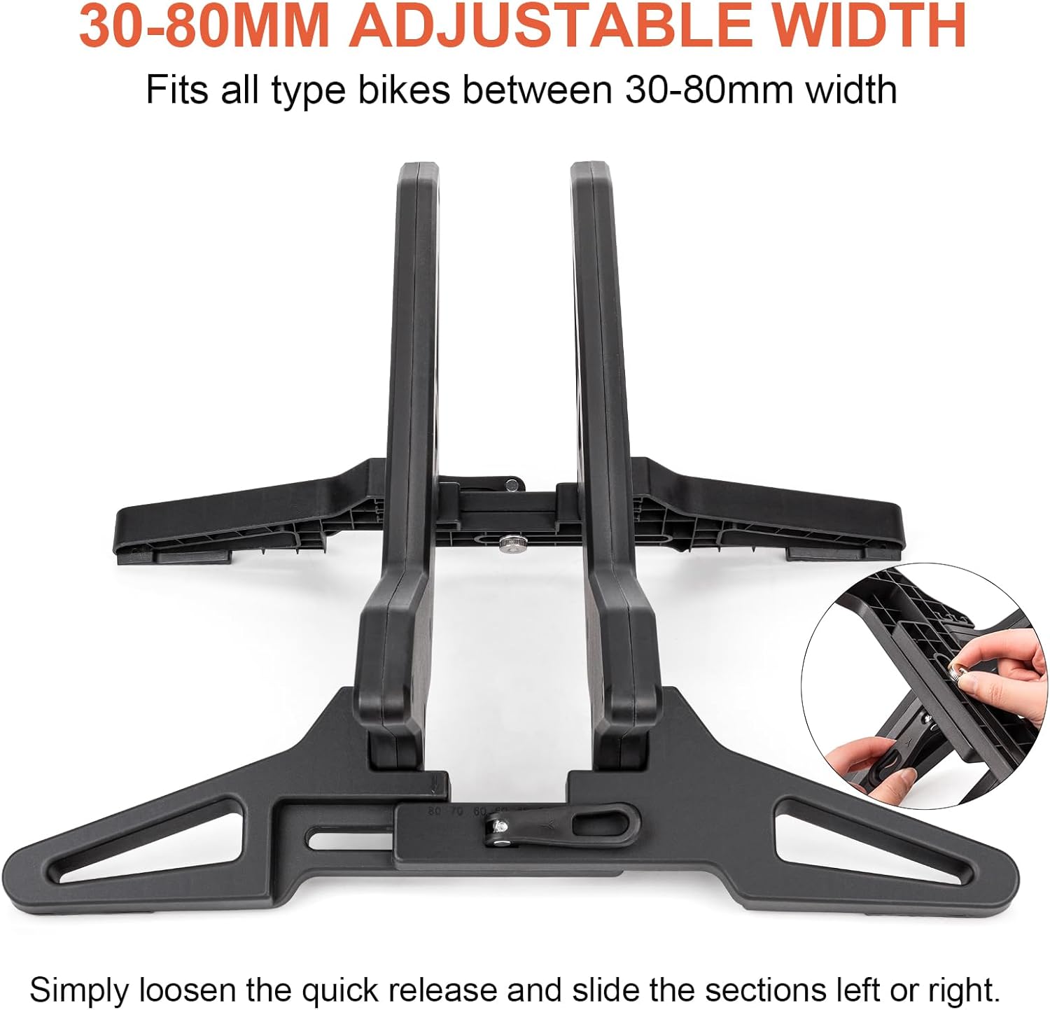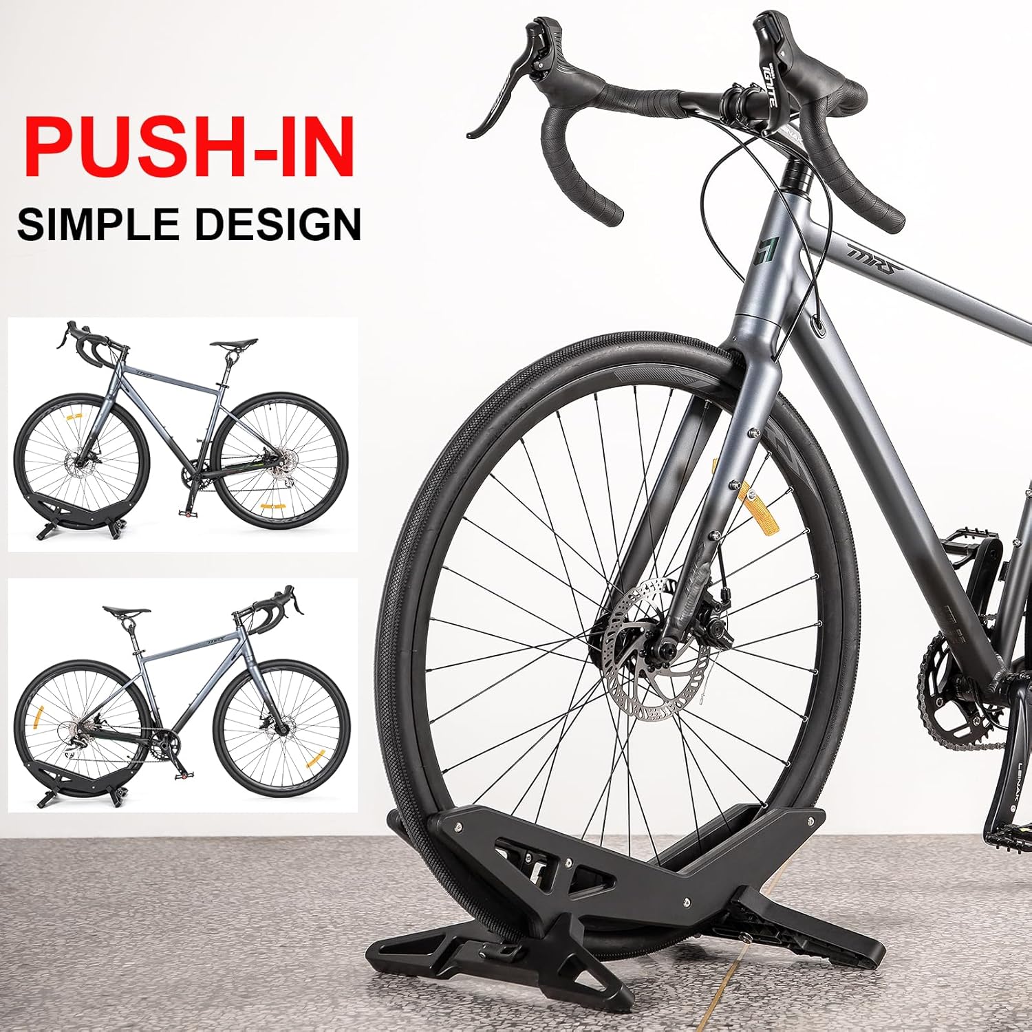 The bike stand is made of ABS material as a whole, despite its small footprint, the stand to be impressively stable with rubber feet that keep it nice and steady.
