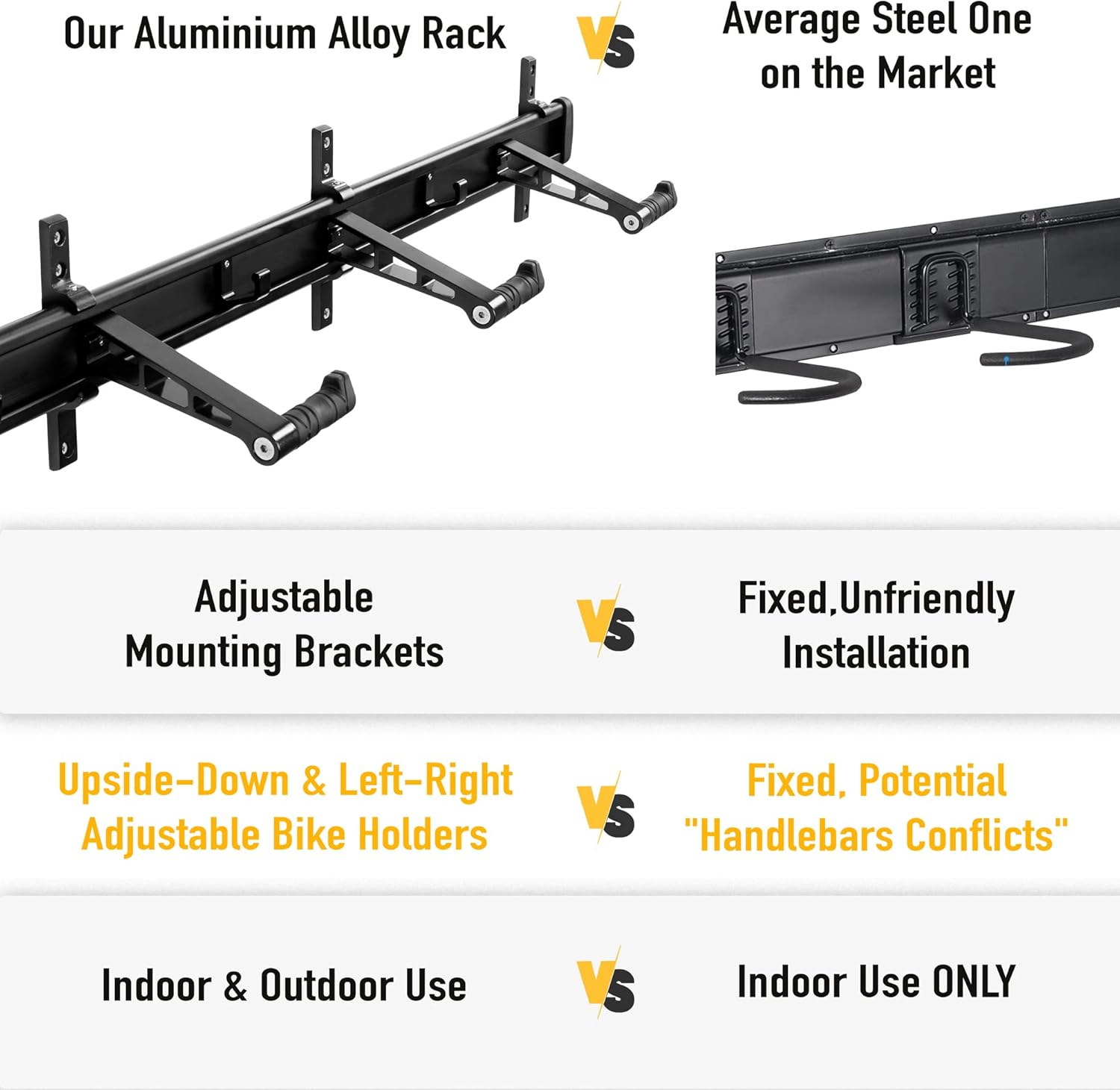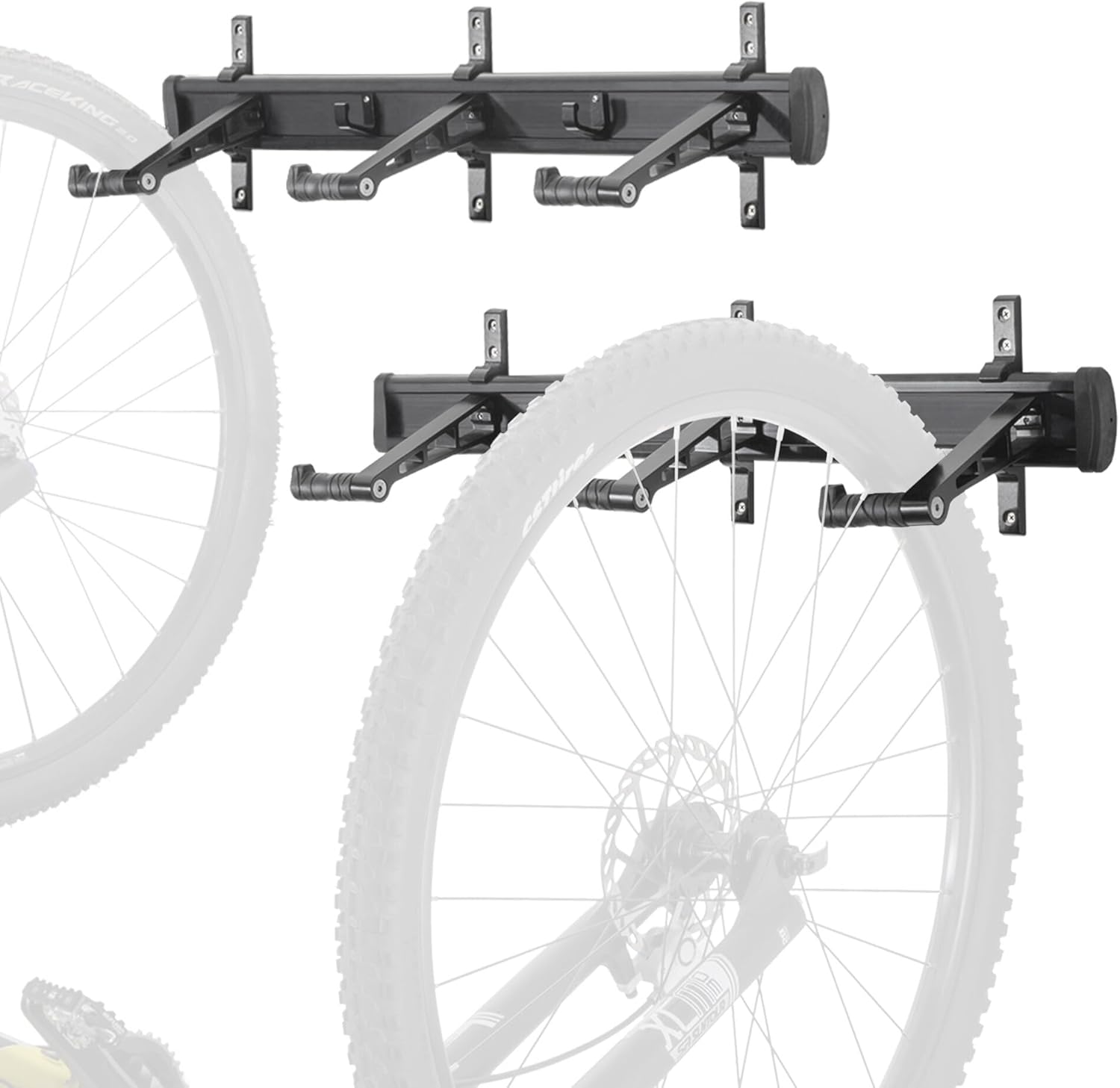CyclingDeal Bike Wall Mount Rack – Adjustable Indoor Outdoor Storage Vertical Cycling Hook Hanger Organiser – Safe & Secure for Storing MTB Road Bicycles in Garage or Home – Upgraded 5 Bikes