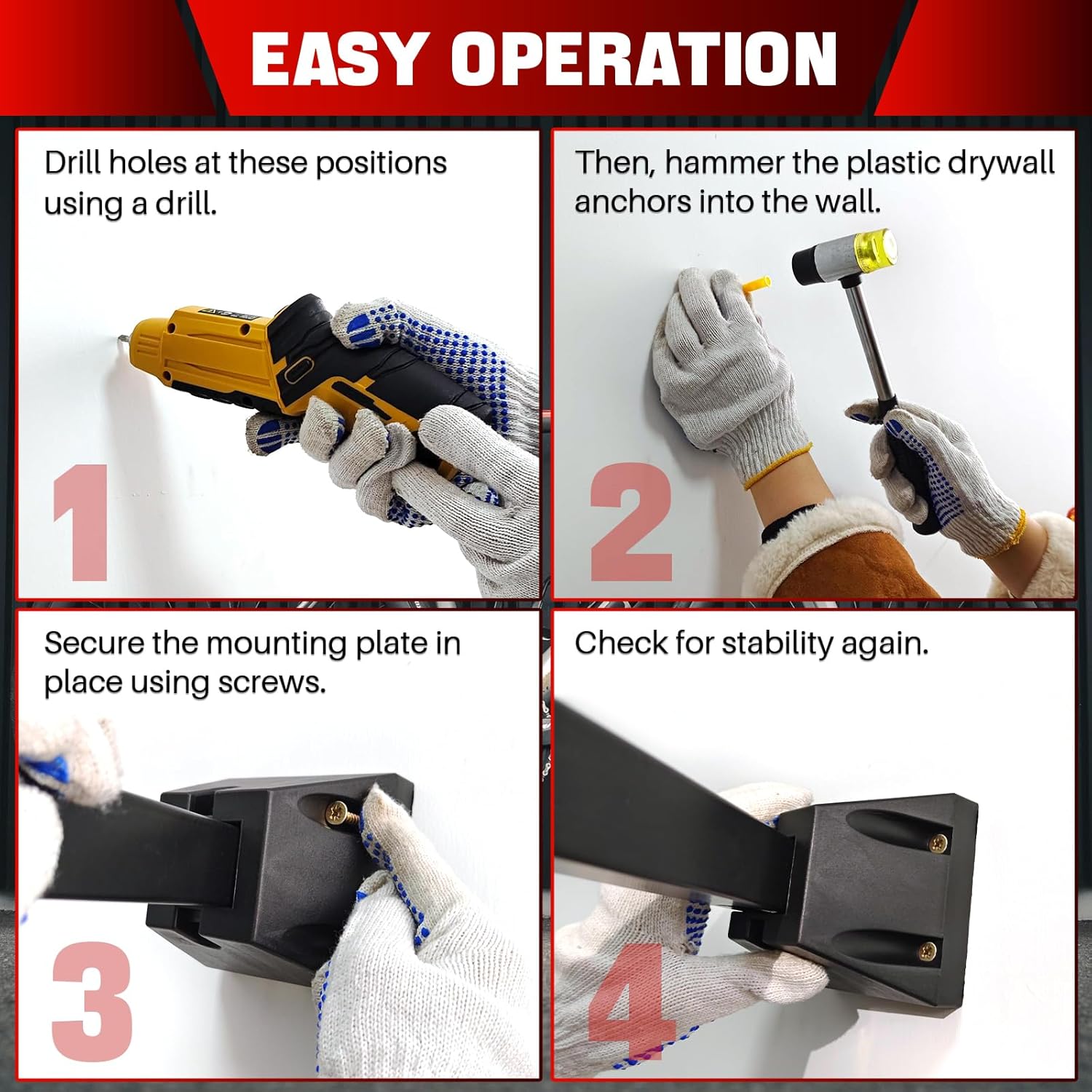 - Please ensure that the socket head screws are always tight. Pls put the bicycle work stand only on a solid and stable wall.