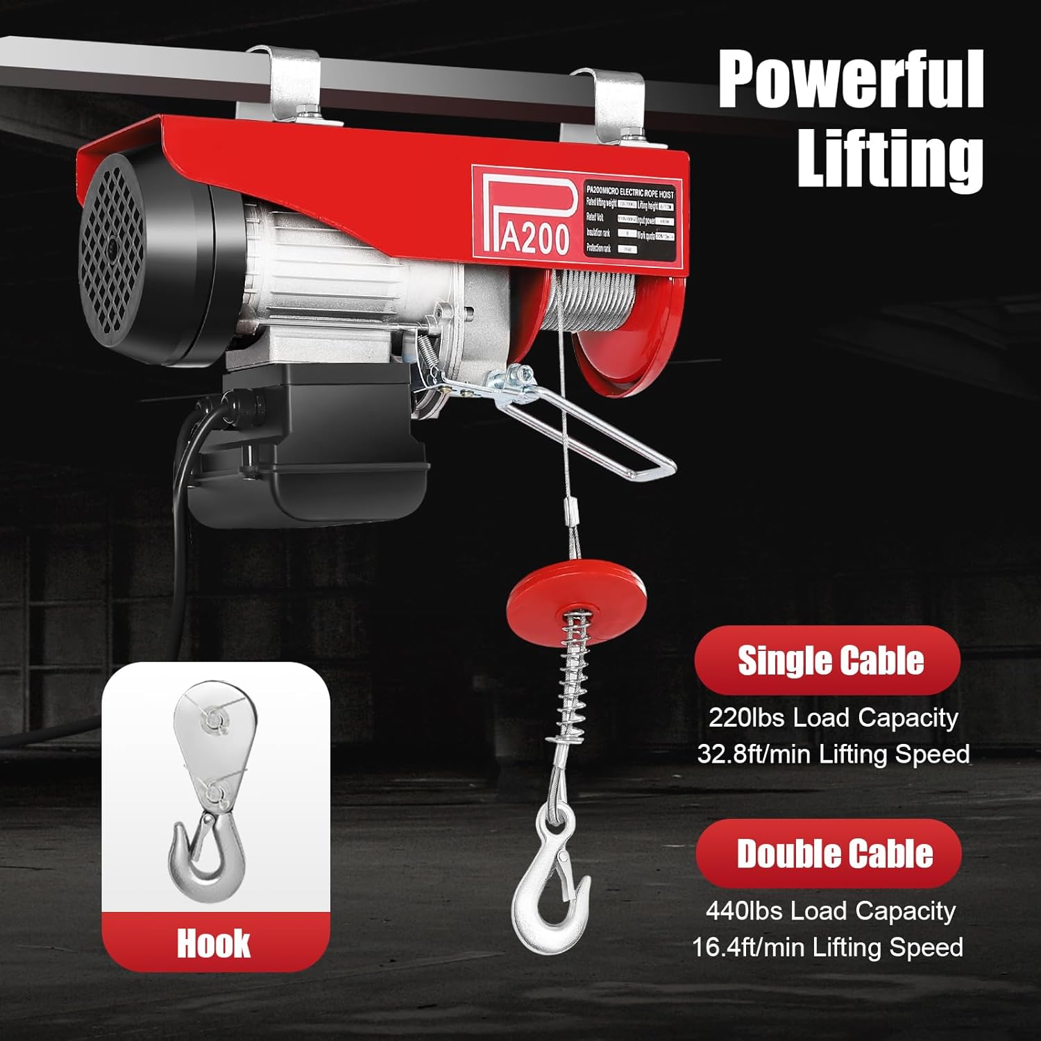 Electric Hoist Winch 440lbs, Automatic Lift Electric Cable Hoist with Wired Remote, Overhead Crane Garage Ceiling Pulley Winch, Electric Wire Rope Hoist, 39.4ft / 20 ft Lifting Height