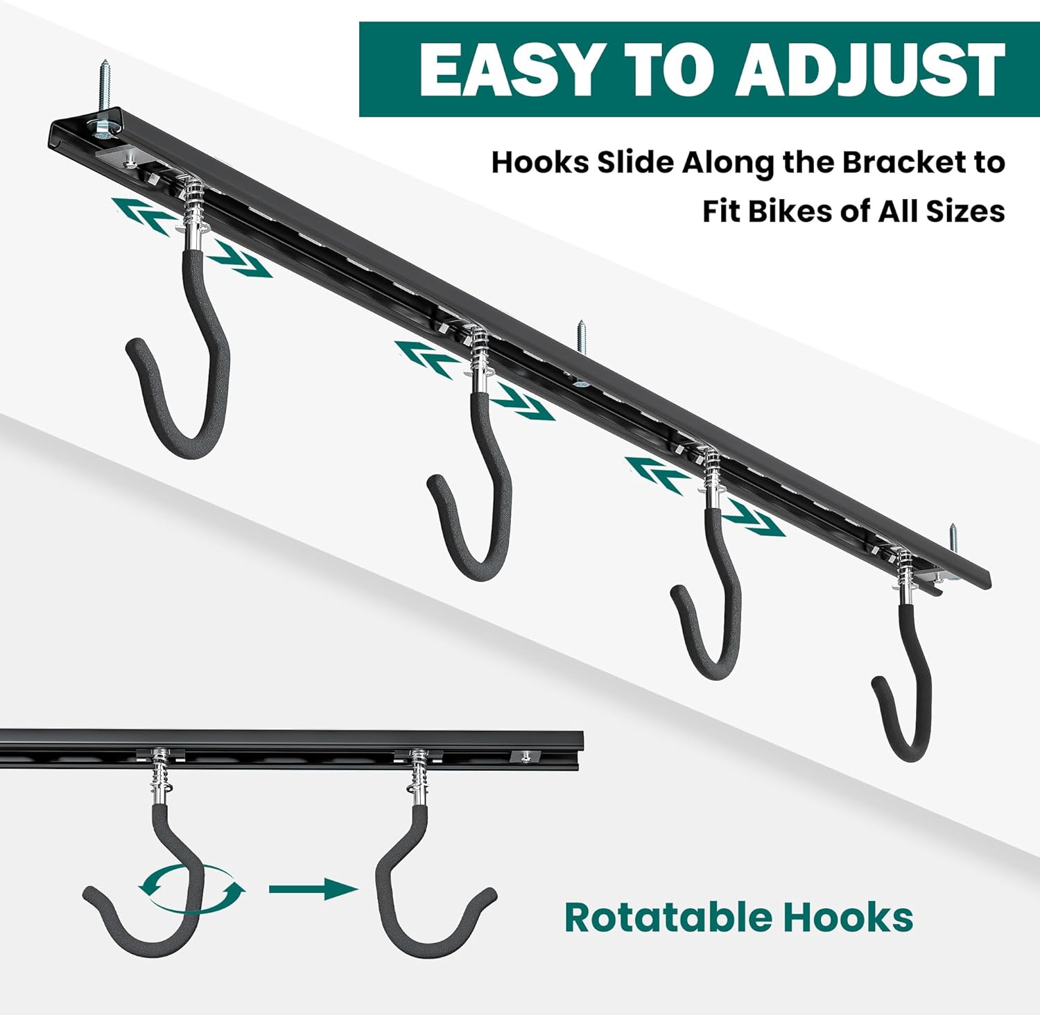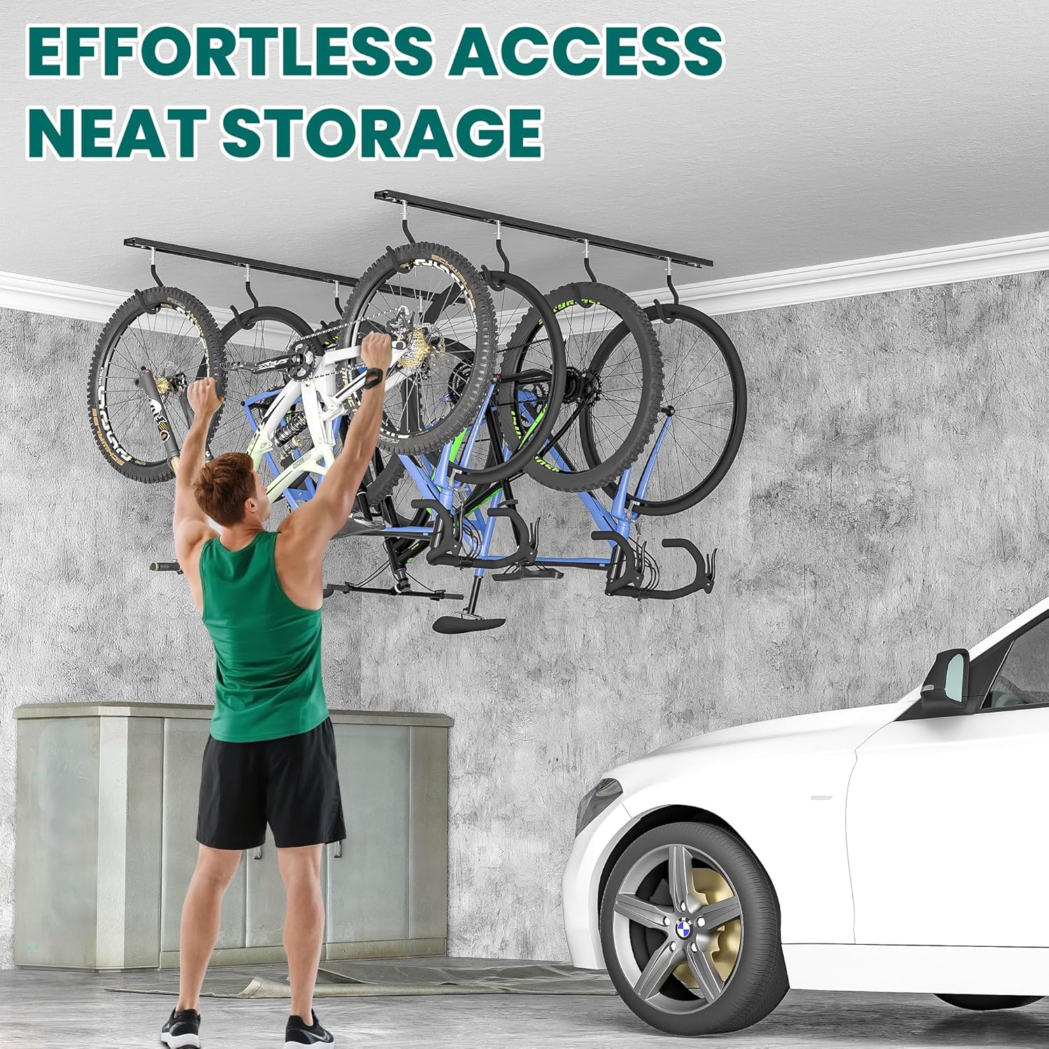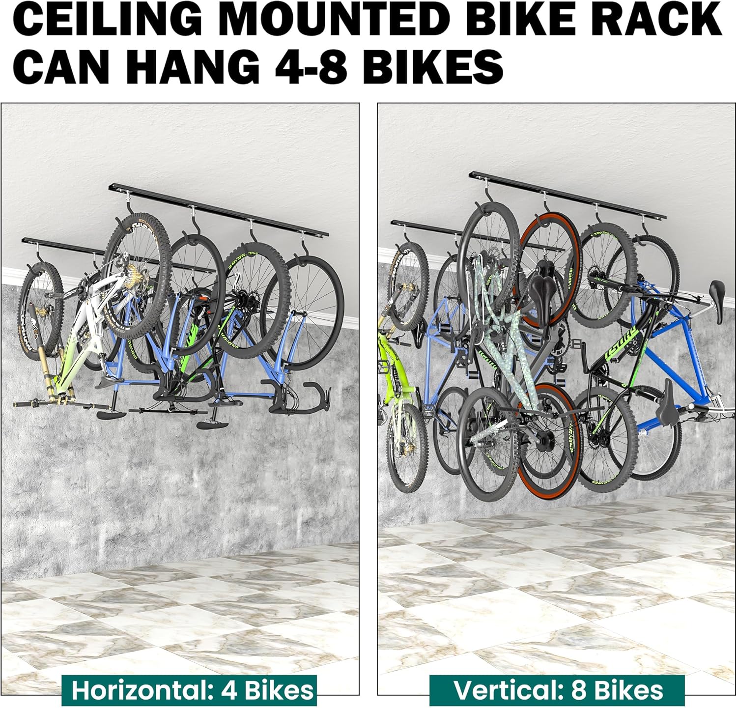 EVERHANGER Ceiling Bike Storage Racks for Garage, Indoor Bike Storage Hanger with Adjustable Bike Hooks for 4 to 8 Bikes