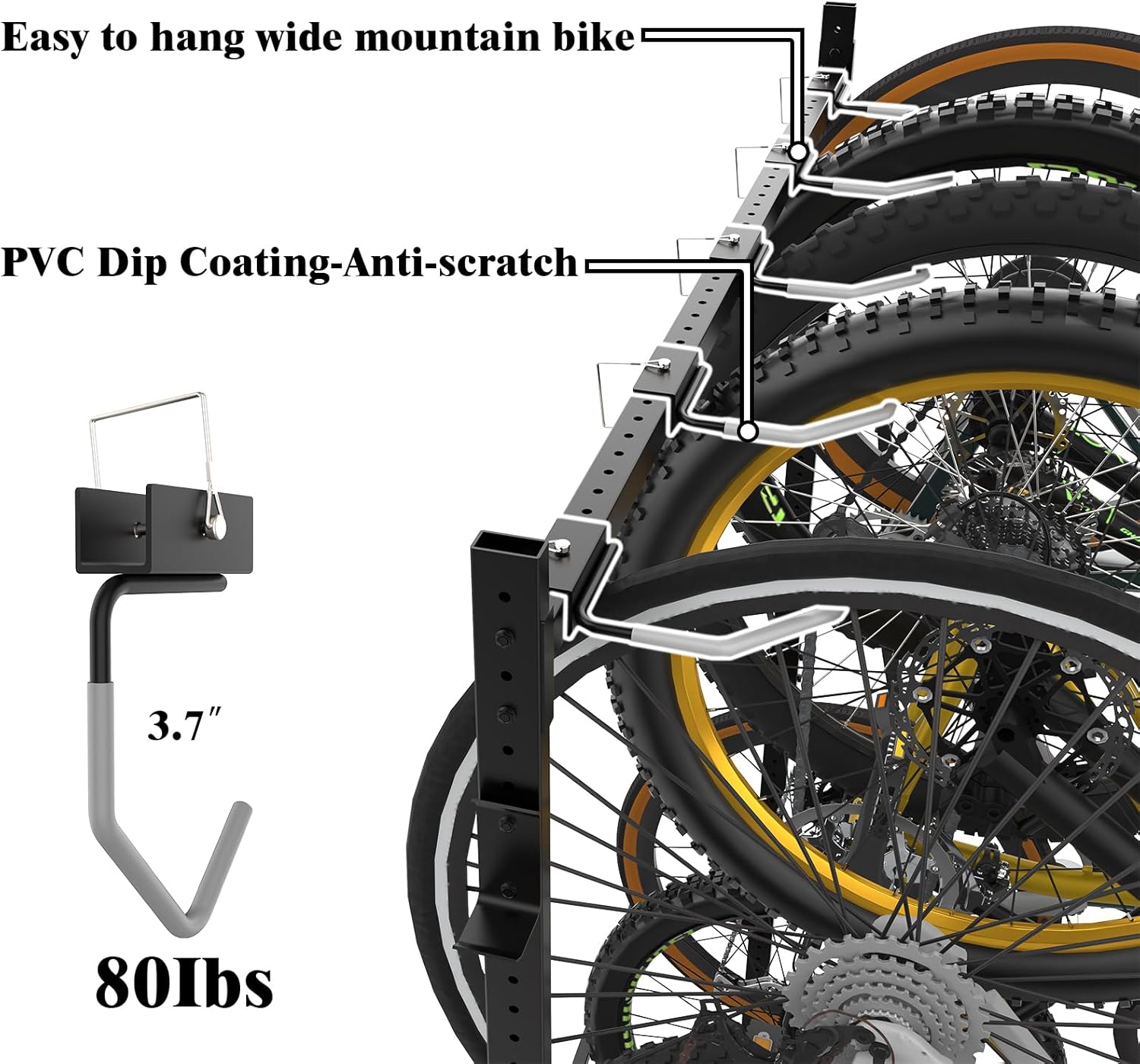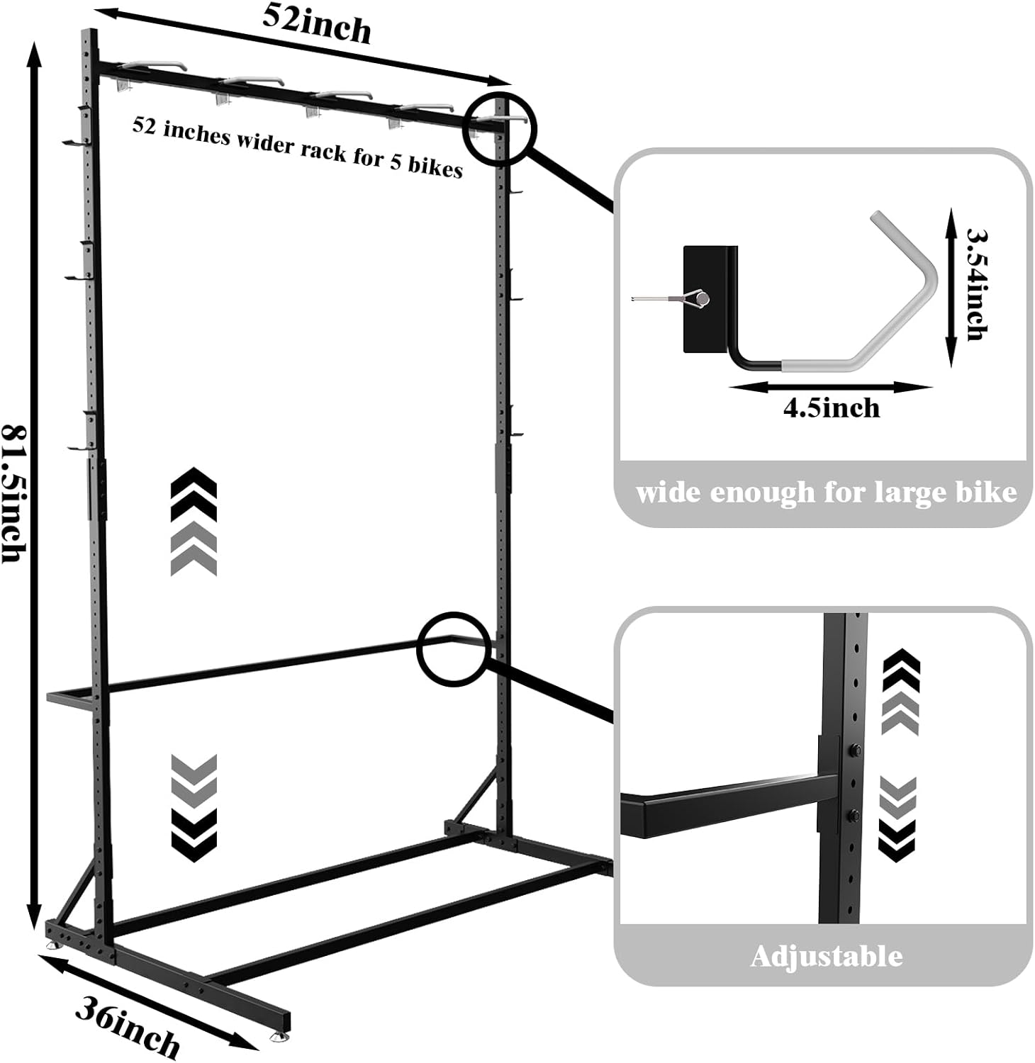 Lezbanz Freestanding Bike Storage Rack for 5 Bikes, 52″ Wide Steel Vertical Bike Rack with 5 Bike Hooks & 6 Hooks for Helmet Storage, Bike Racks for Home and Garage, Indoor Floor Bike Stand