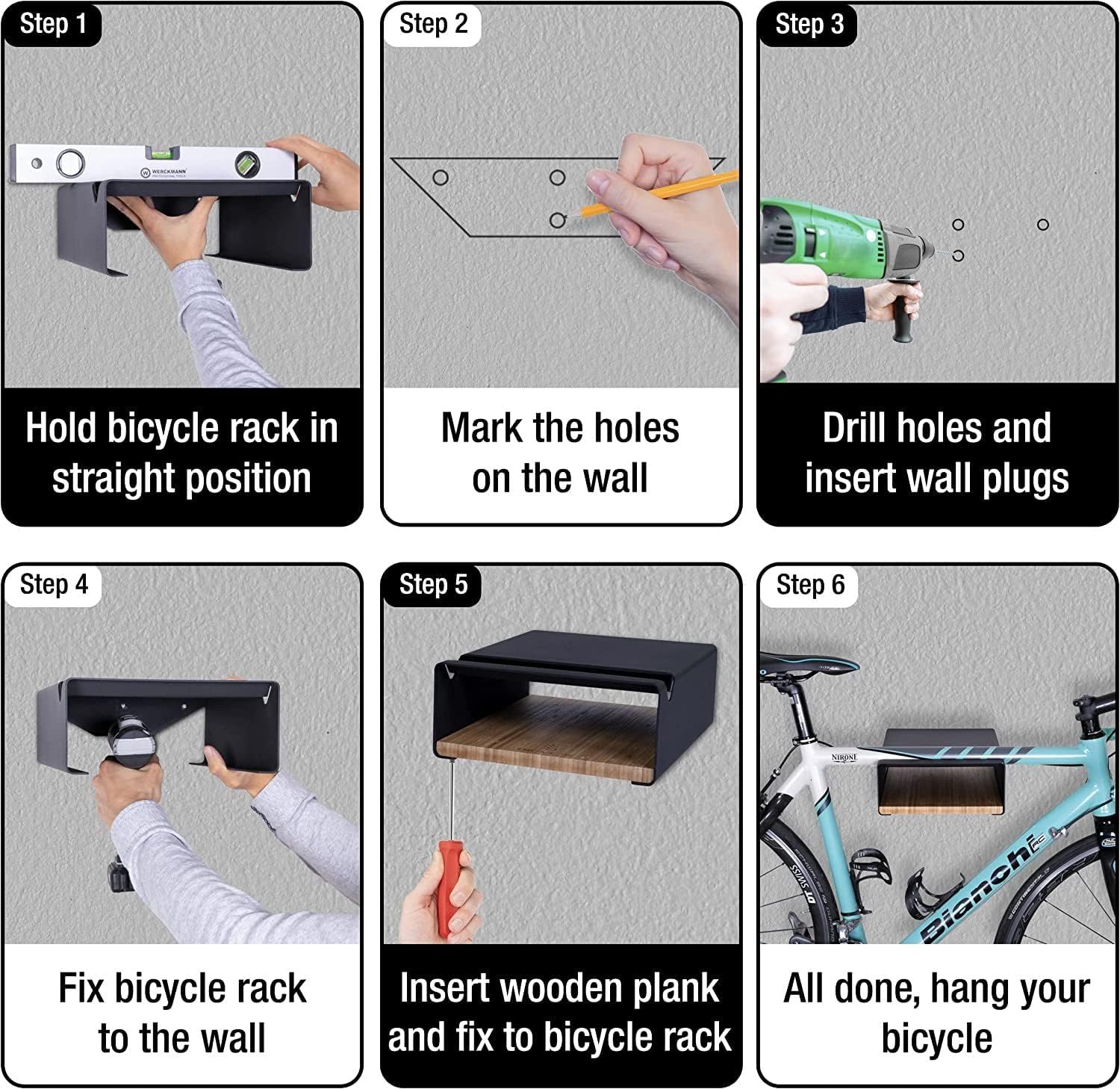MOSHAY Bicycle Wall Mount S-Rack Bicycle Holder Aluminium Wood – Bicycle Mount for Road Bike Gravel Bike Touring Bike – Bicycle Stand Wall Indoor Storage for Garage Living Room