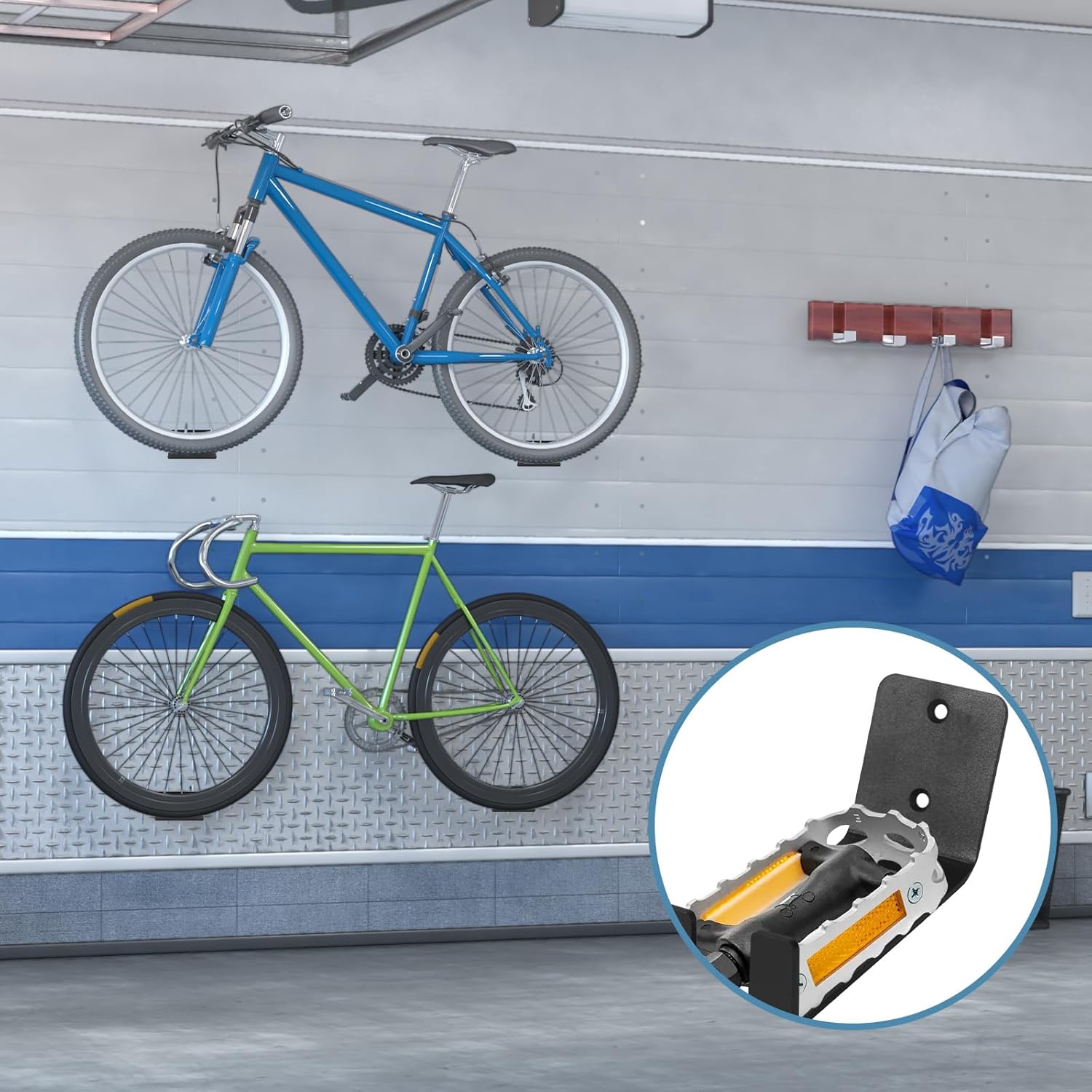 4. Easily store bikes on the wall, not only can protect the bikes well, but it also frees up more space.
