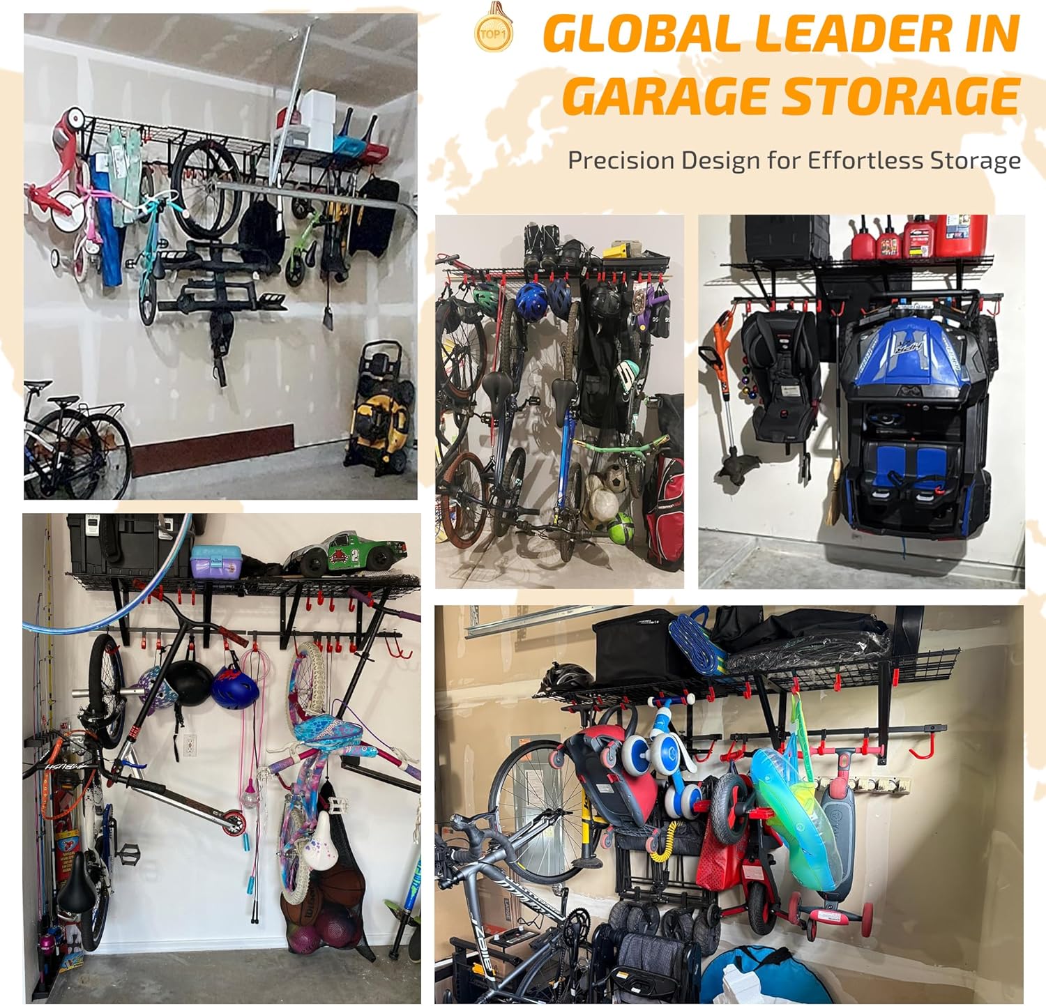 Come with 10 storage hooks. Can be used to hang helmet, bags and garden tools, maximize storage space.