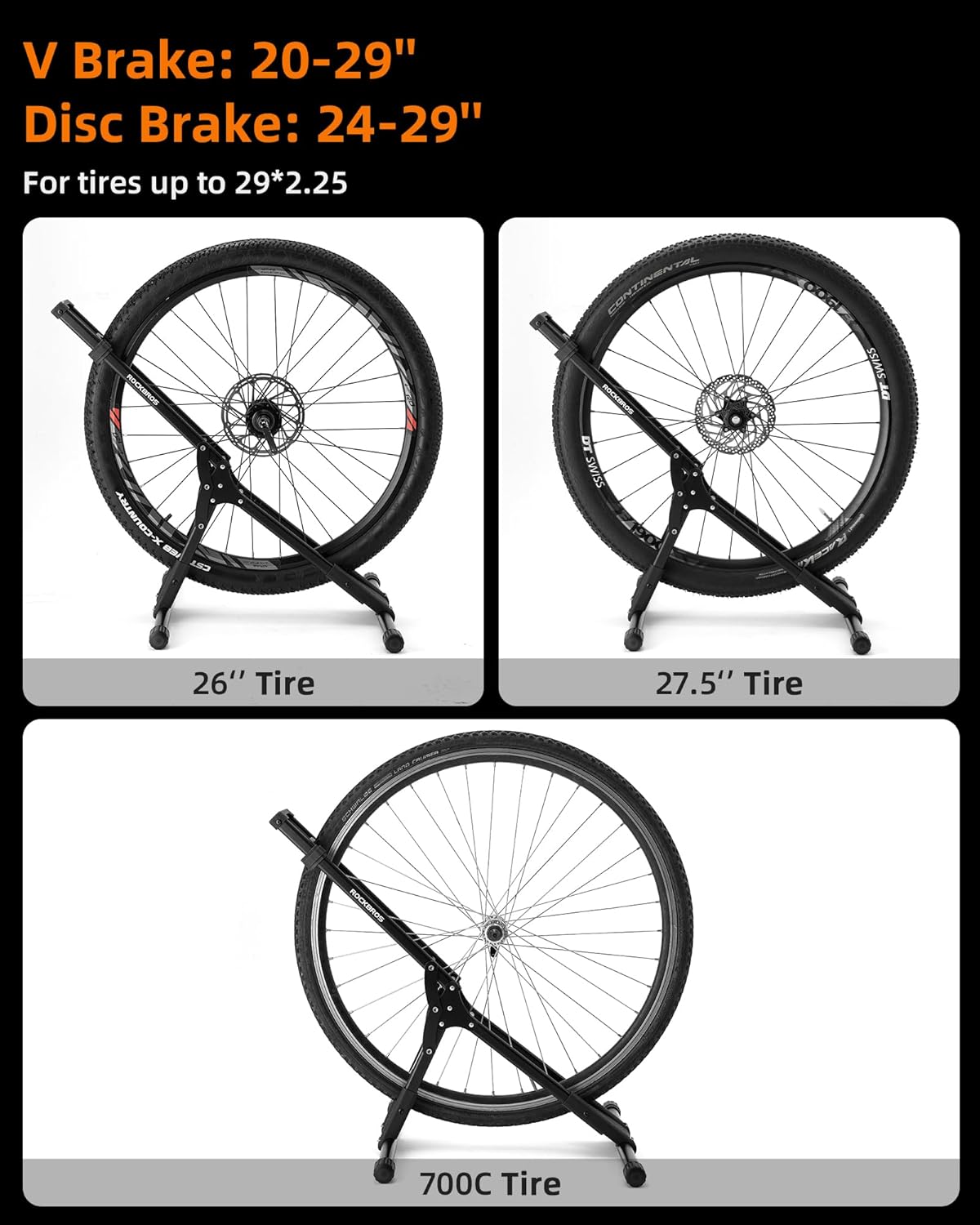 ROCKBROS Indoor Bike Stand for Storage, Garage – Floor Stand for 20-29” Mountain & Road Bikes