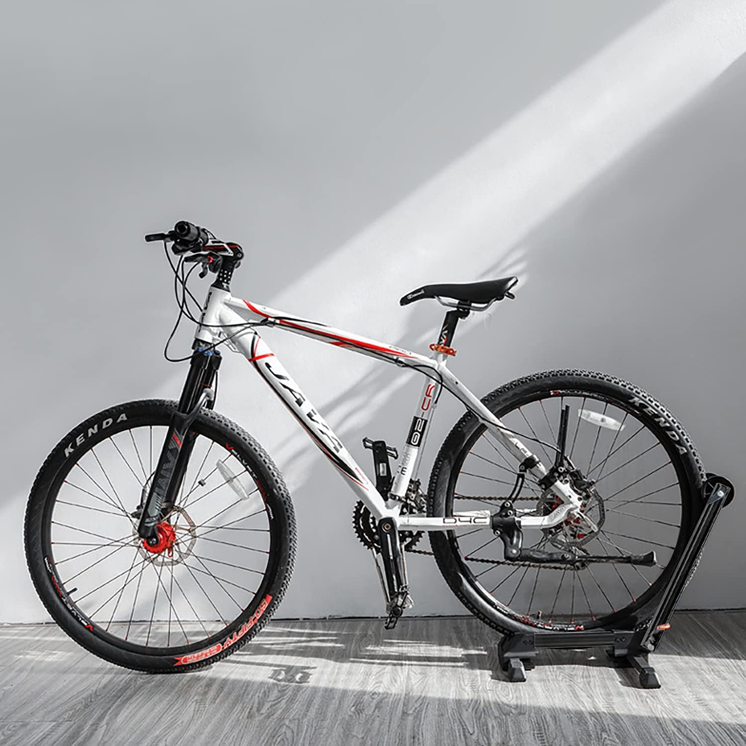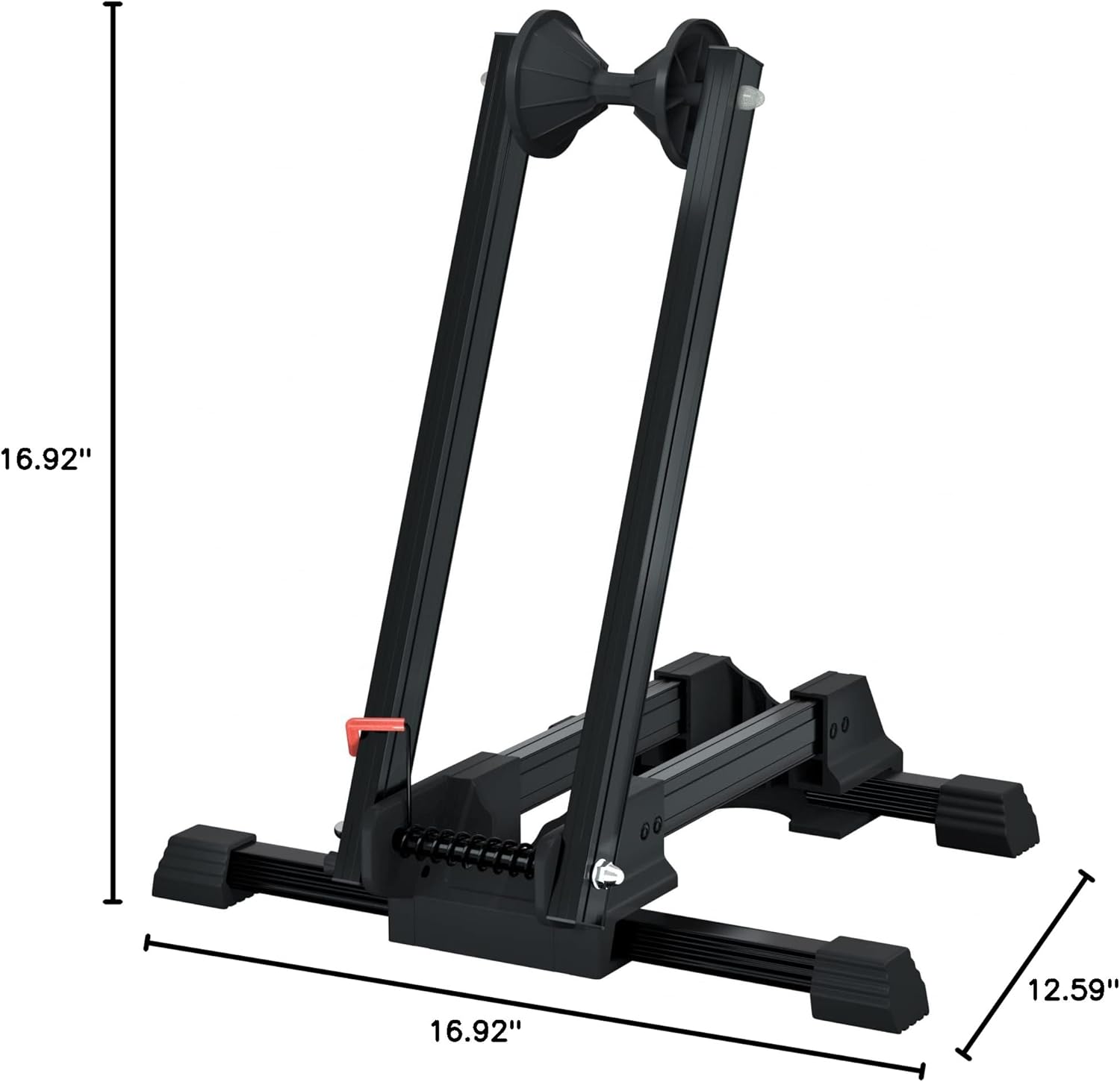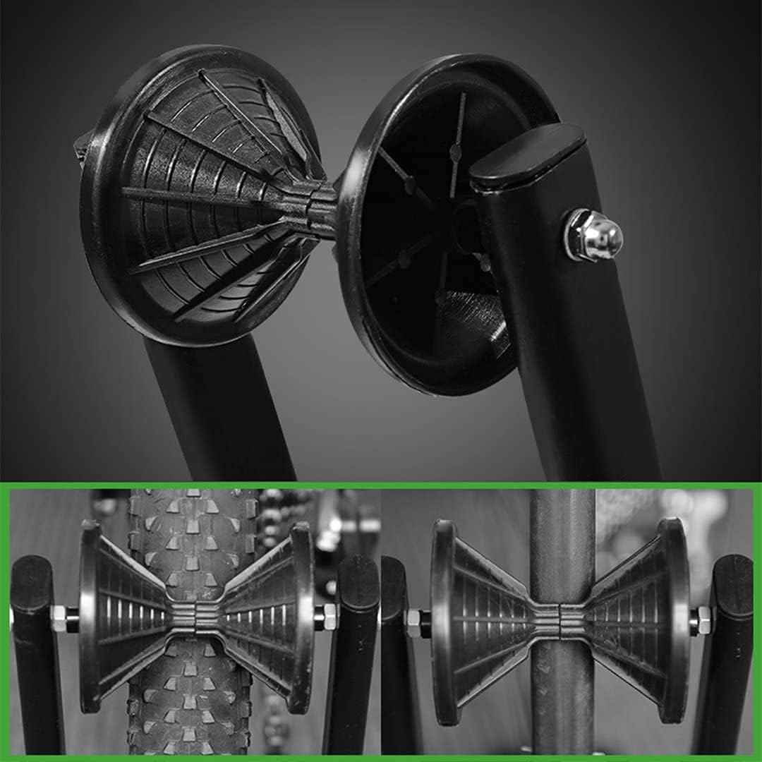 - 【Foldable & Portable&Save Space】: A simple one-pull-knob will allow to fold the stand into a flat shape, Only 17.12(L) inch x3.74(H) inch x7.16(W)inch when folded. Saving storage when not in use or to carry it into the car when going riding. Your bikes will never be lying on the ground or leaning against buildings or trees anymore