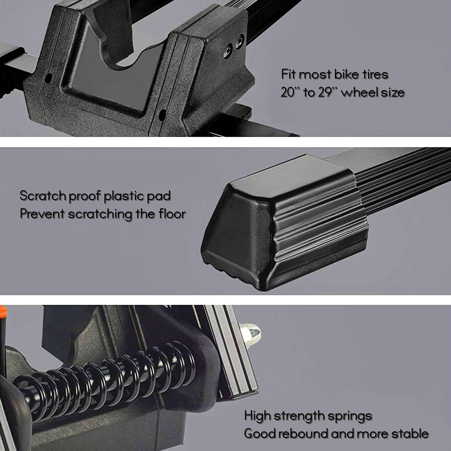 - 【Protective】: Delicate specification coating with engineering plastics on the corner to protect your bike from nicks and scratches. Spring-loaded arm easily hold front wheel without risk of scratching rim or spokes