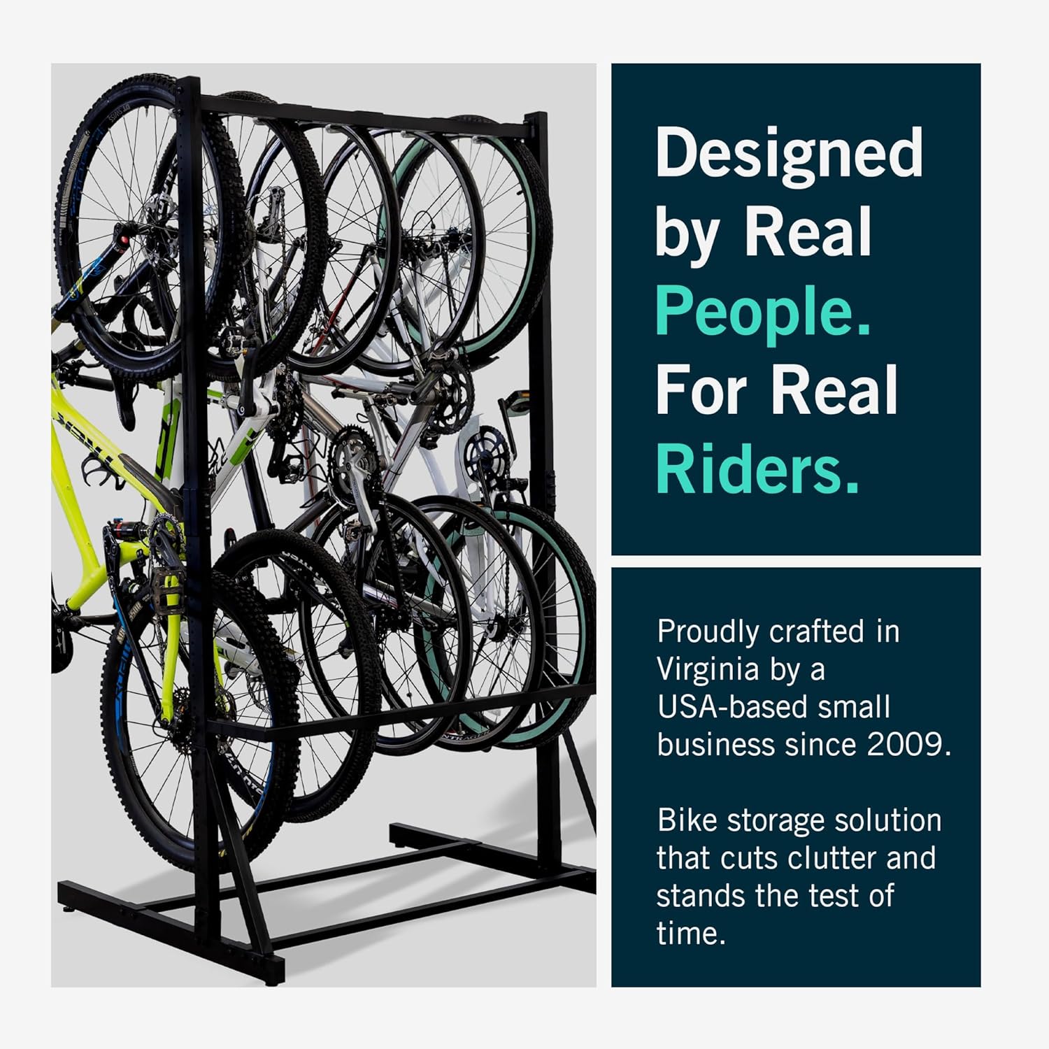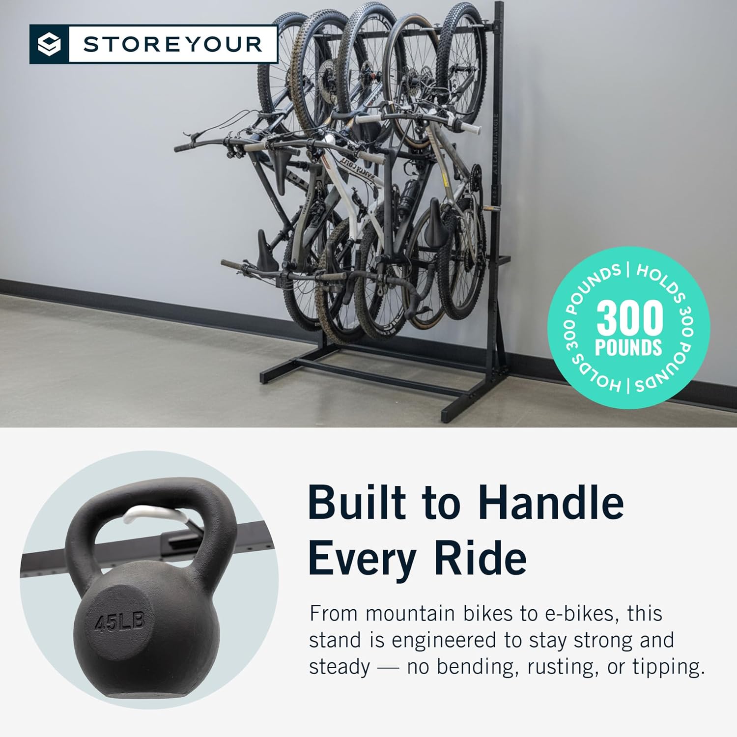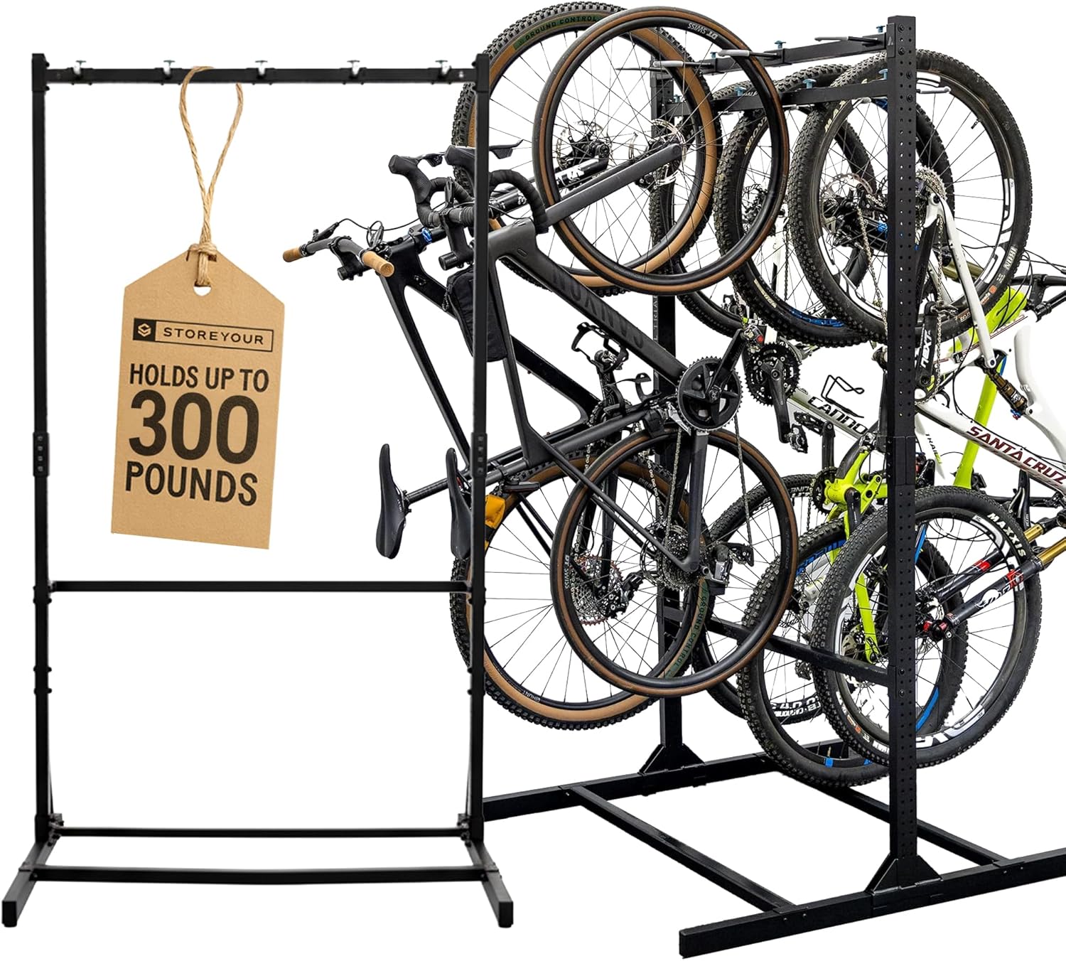 StoreYourBoard Indoor Bike Rack – Freestanding 5 Bike Storage Stand – Heavy-Duty Bike Holder for Garage or Home – Space-Saving Indoor Bike Stands for Road, Mountain, and Hybrid Bicycles – Black