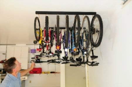 Titan Track is a ceiling mounted storage track for your garage,basement,carport or polebarn. Great for hanging Bikes,Lawn and Garden equipment, Sporting goods and more. The adjustable hooks allows you to hang heaver hard to hang items using 2 hooks and extra hooks can be added by simply removing the end cap.