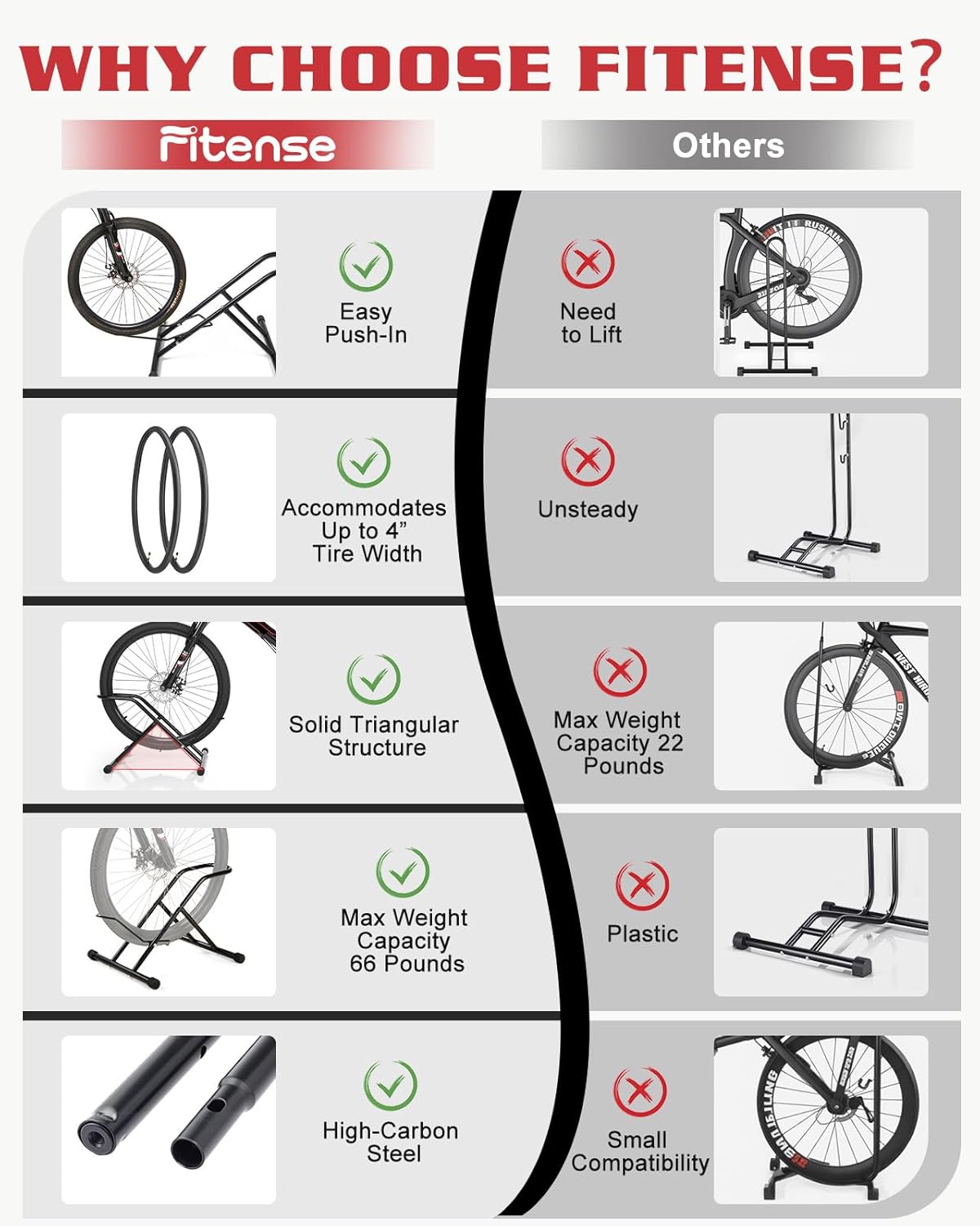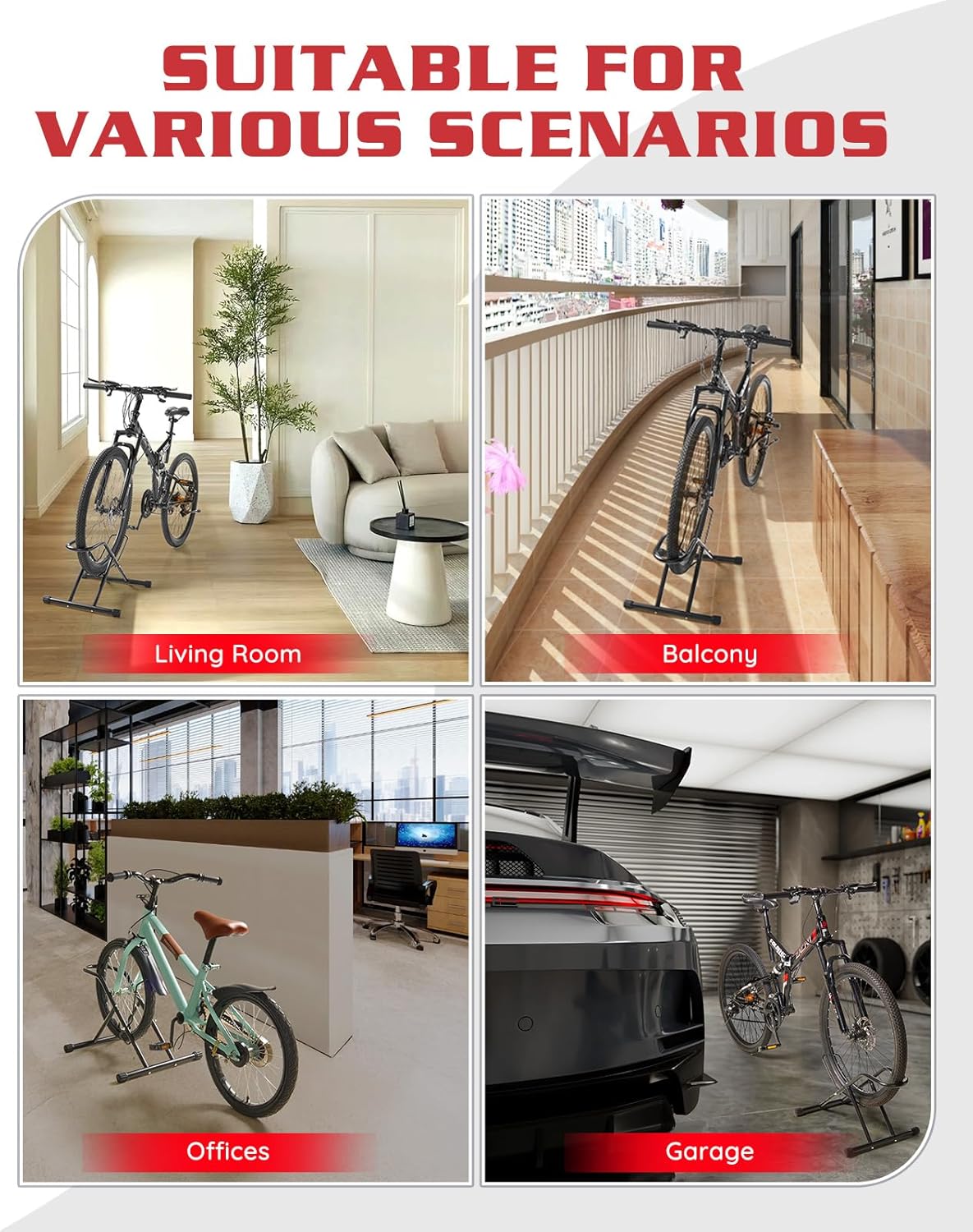 Upgraded 3.3"Wide Tire Floor Bike Stand Rack, Heavy Duty Garage Indoor Bike Storage, Fits 20"-27" Wheels, Kids Road Mountain Bikes, 66lbs Max Load, Anti-Slip Rubber Base quantity