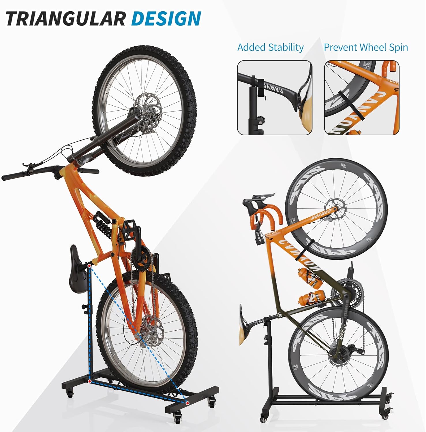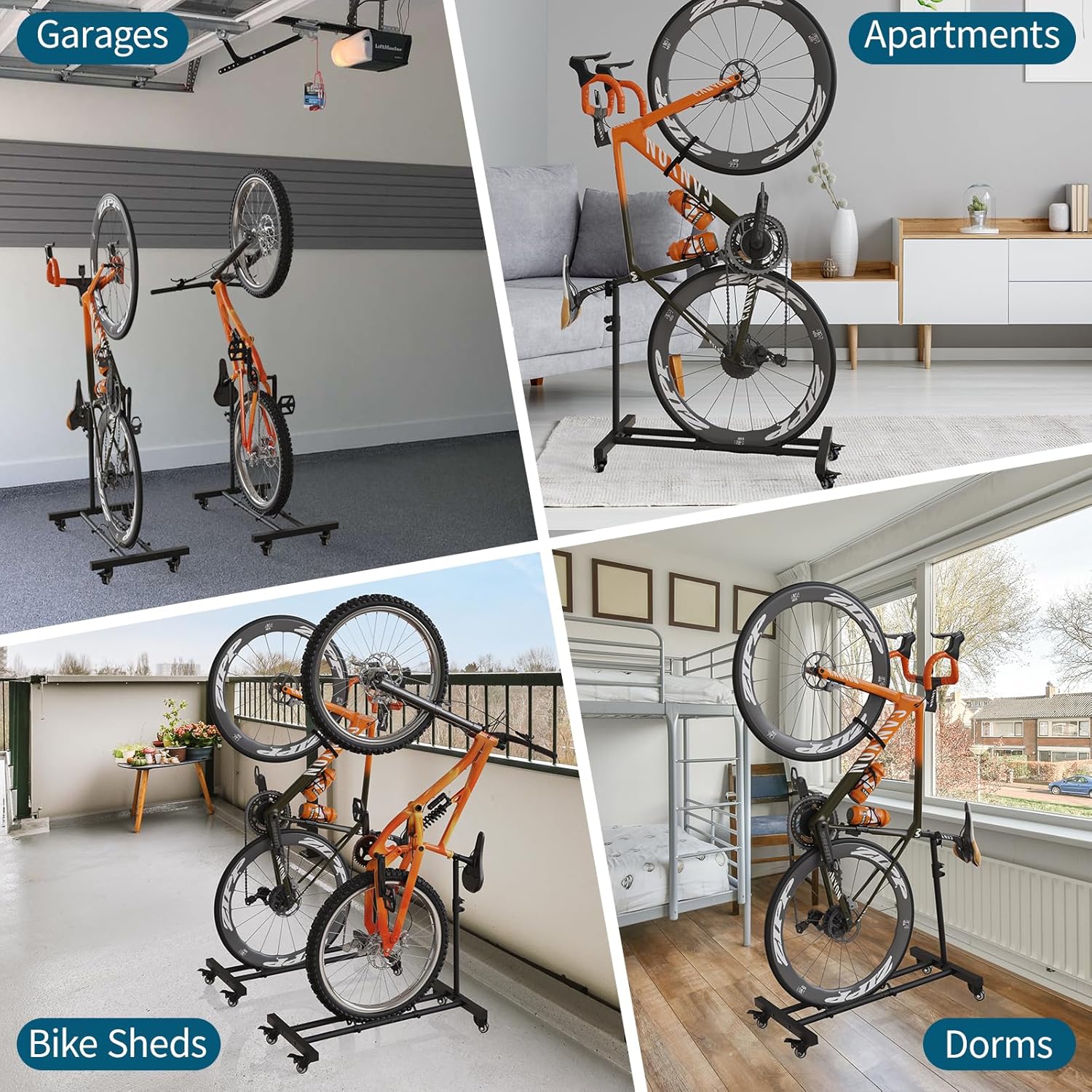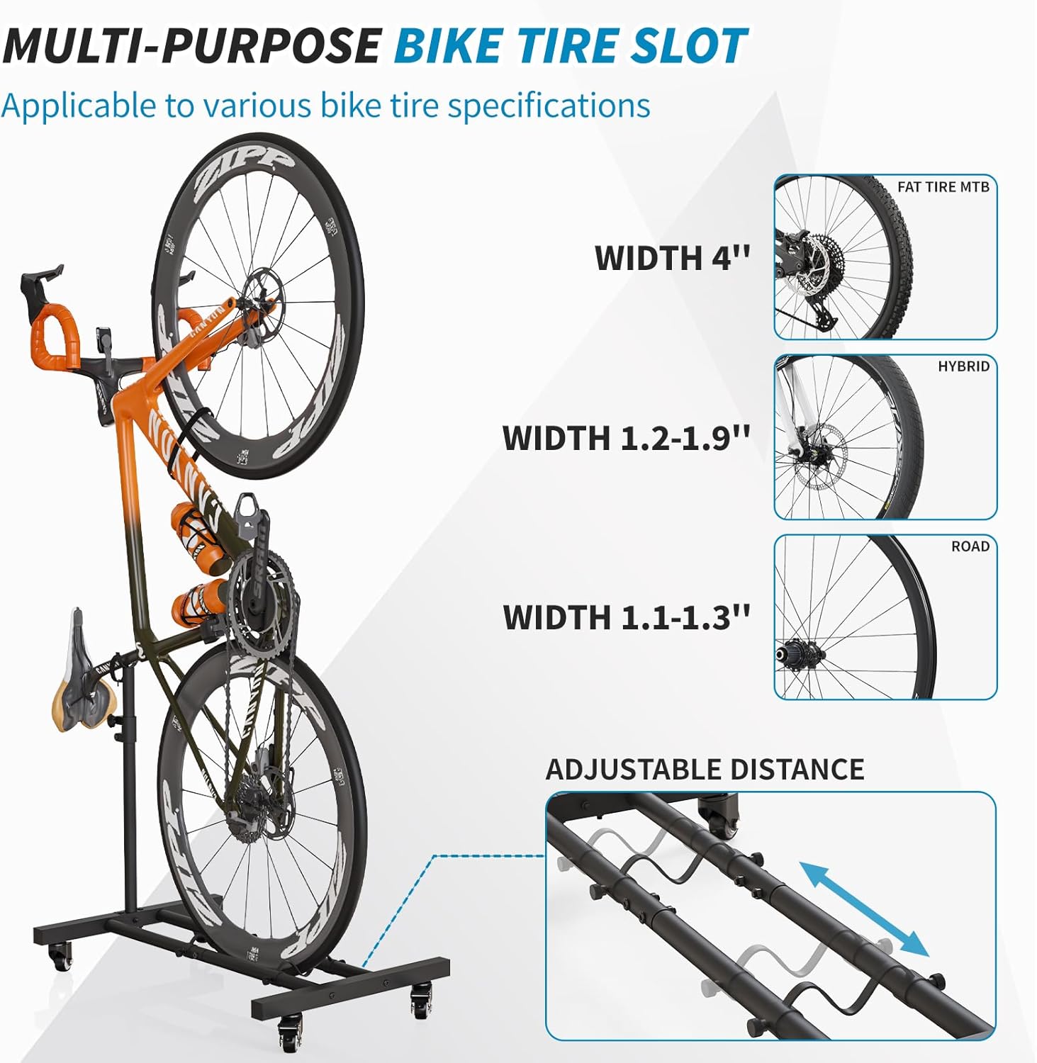 Vertical Bike Stand, Upright Bike Parking Rack Floor, Adjustable Bicycle Storage for Wheels Sizes up to 29″, Freestanding Bicycle Organizer with Swivel Casters, Indoor Bike Holder for Garage 2-Pack