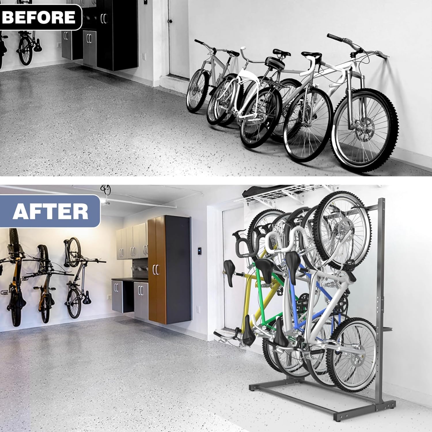 WALMANN Freestanding Bike Stand for Garage, 5 Bikes Vertical Bike Storage Stand Heavy Duty Bike Floor Stand quantity