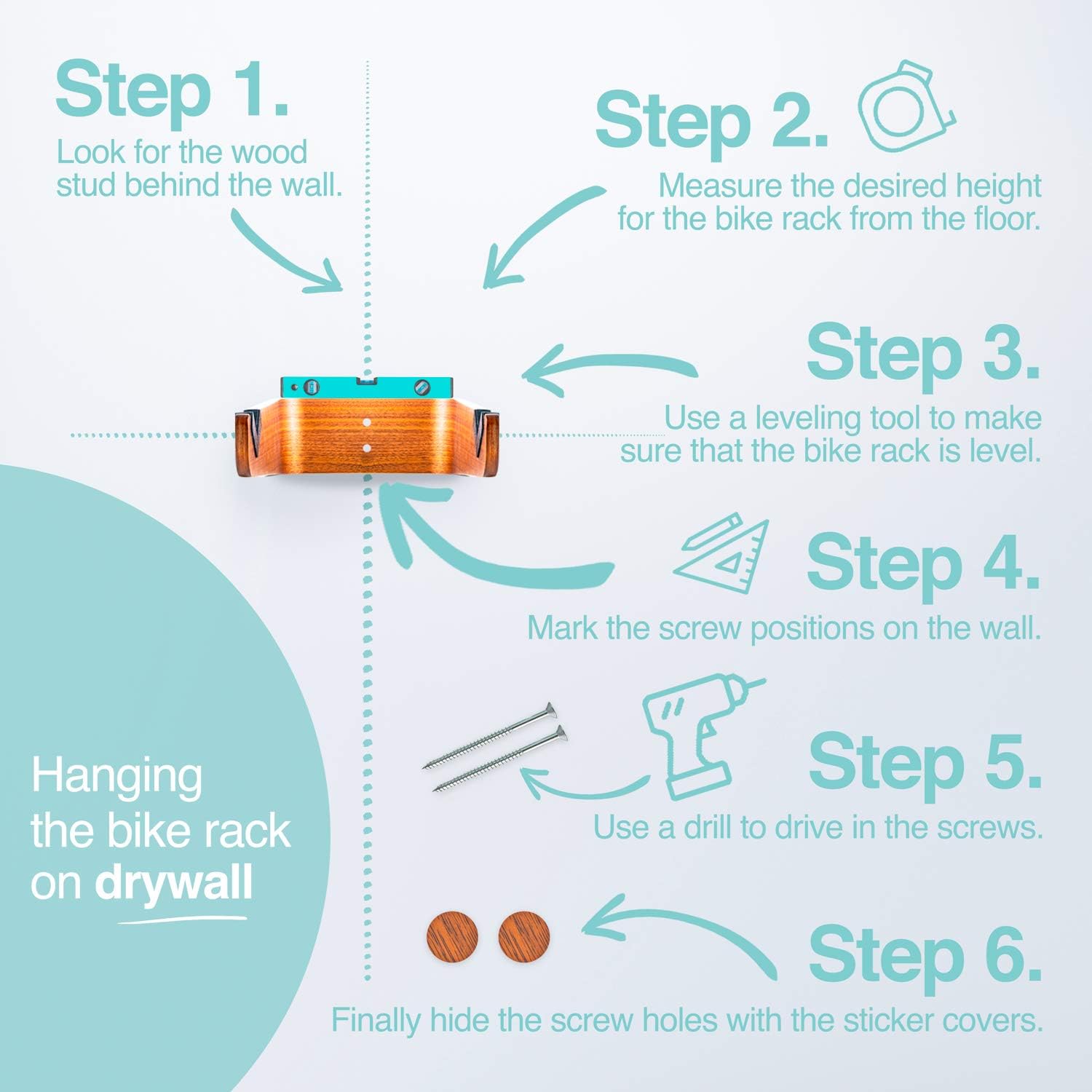 WOKK Wooden Bike Wall Mount – Horizontal Bicycle Wall mount for Home or Garage, Wall Bike Rack for apartment, Your Elegant Indoor Bike Storage