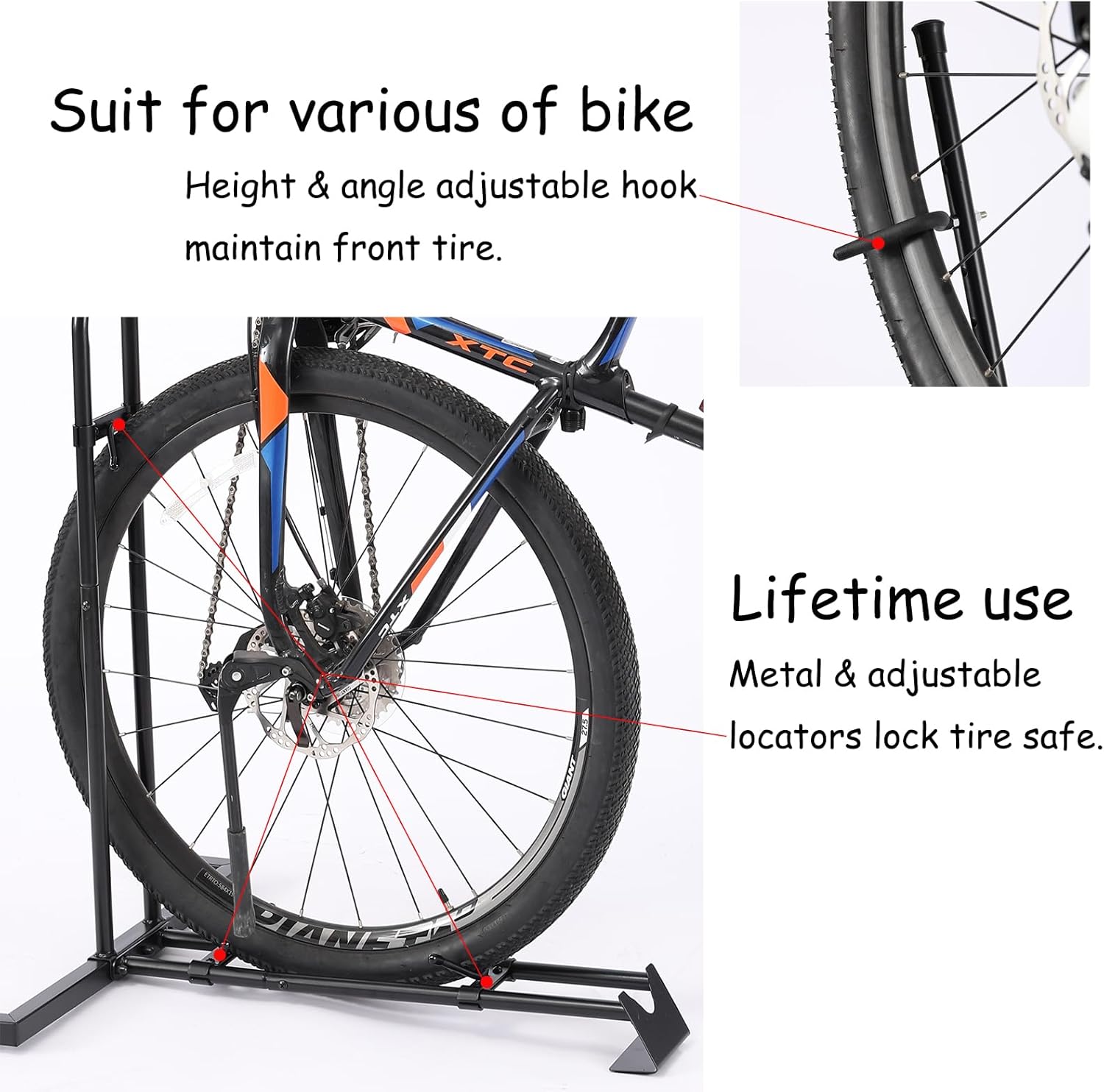 - 【Universal Bike Compatibility】: Designed to fit most adult bicycles! Easily accommodates various types and sizes, including Road Bikes, Mountain Bikes (MTB), Hybrids, and more. Adjustable height ensure a secure fit for different wheelbases and tire widths.